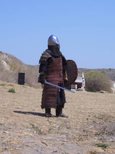 Ну вот, не знаю как вас порадовать... Вот фото почти настоящего дружинника=) Стальной Шлем +10, Кольчужный доспех +20!
